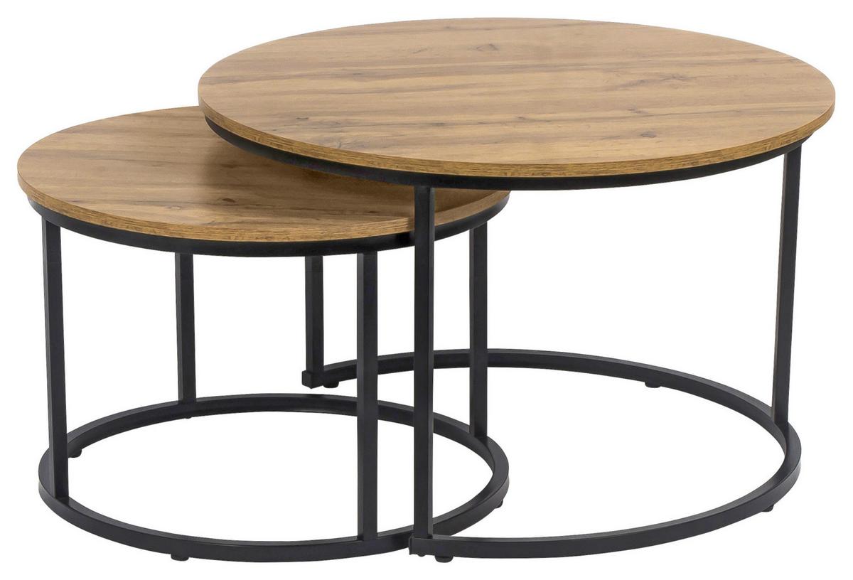Masă auxiliară DUO - culoare natur/negru, Modern, metal/material pe bază de lemn (53-43/45-35cm) - Modern Living